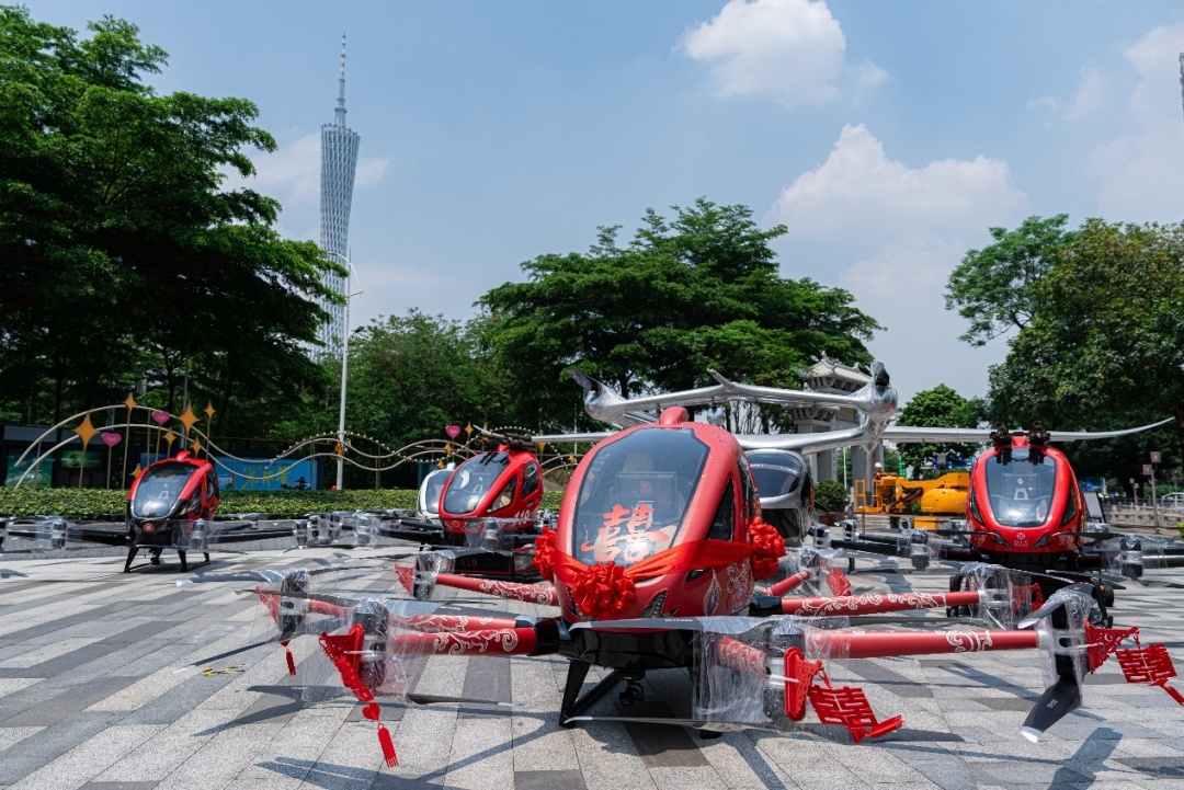 此外,全球首台获颁适航证的载人级自动驾驶飞行器——EH216-S也限时开放展示:在集体婚礼期间,EH516-S带着全新涂装“龙凤呈祥”号出现,为当天领证的新人们贺喜。同时现场还展出全球首台通过型号合格认证的吨级以上eVTOL(电动垂直起降)航空器——峰飞航空科技自主研发的V2000CG无人驾驶航空器。