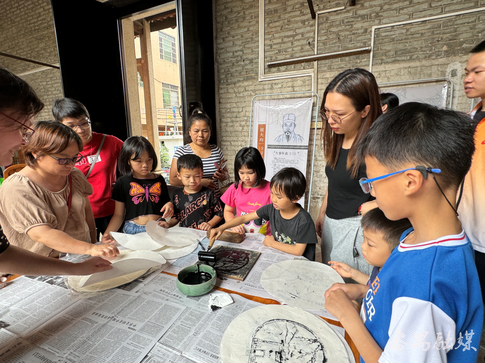 当日,在社工和屈大均文化代言人的带领下,亲子们先后前往屈大均墓、八泉亭、屈大均文化长廊等参观学习,认真聆听遗址遗迹历史背景和文化长廊创作典故的介绍。随后,全体参与人员来到听泉屈公祠,一起诵读屈大均的经典诗词作品,并参与“抢答积分赛”“诗词背诵接龙”“寻字填空比拼”等互动游戏,通过寓教于乐的方式,进一步提升孩子们的学习兴趣,加深对屈大均文化的记忆。此外,现场还安排了拓印体验,孩子们亲自动手刷墨、放纸、按压,一气呵成,创作出一幅幅独一无二的作品。