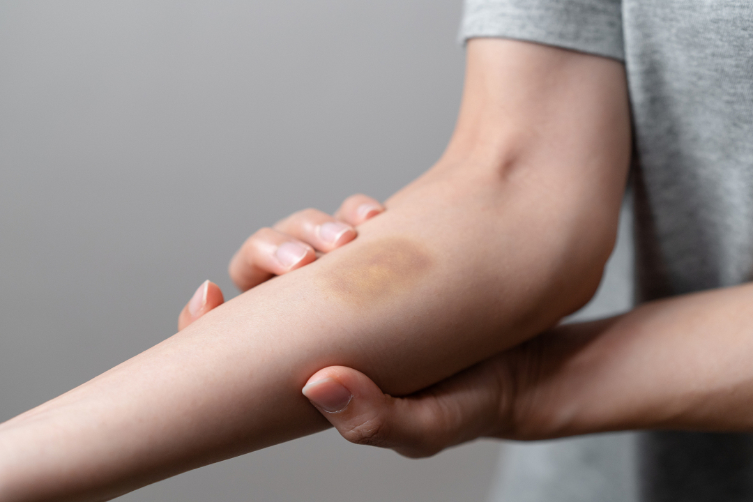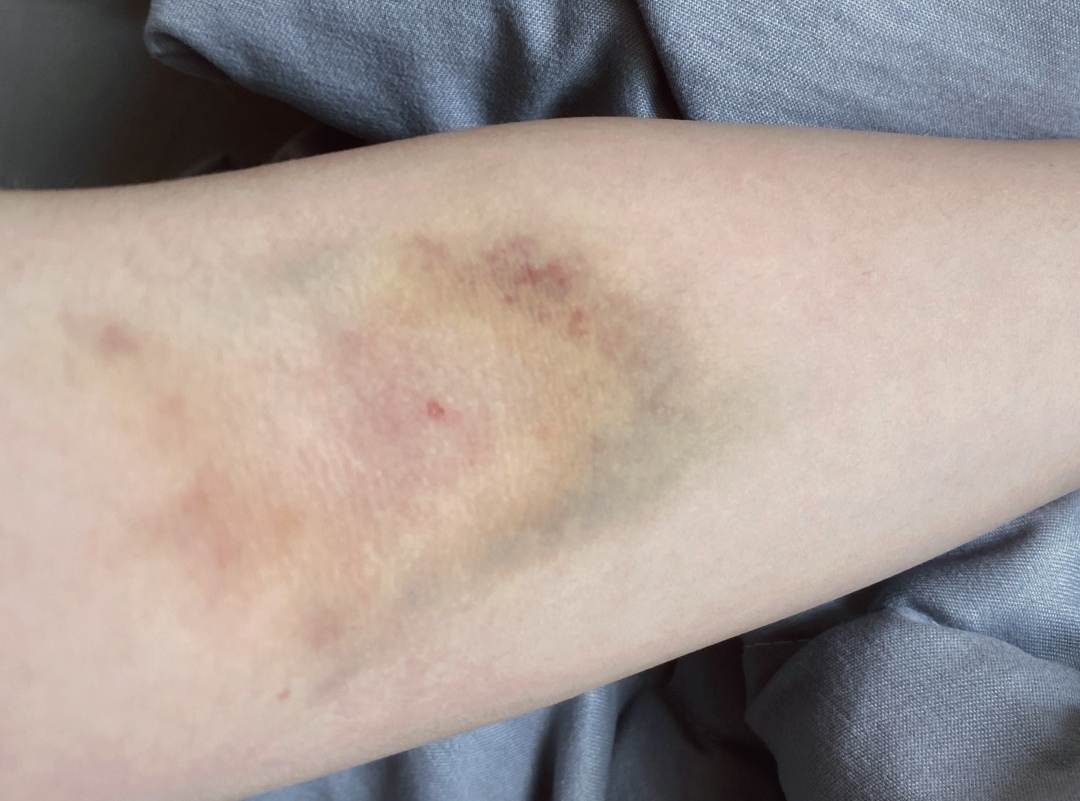 抽血后没有正确按压而产生的淤青(图/有约君)