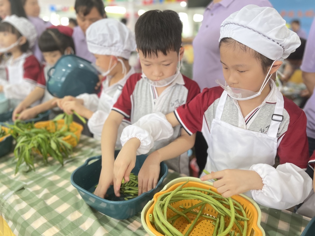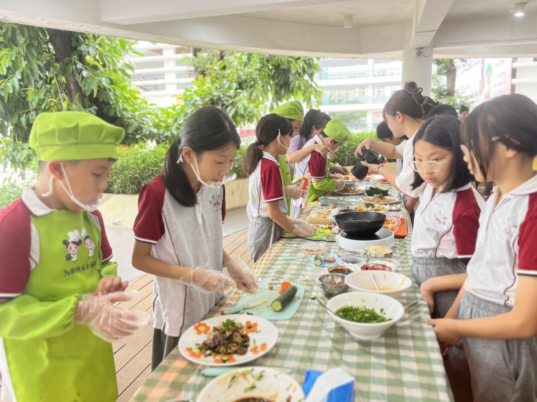 其中,同学们展示的厨艺项目随着年级增长而难度升高,展示洗菜、切菜等各个环节和煎炒、凉拌各类做法。
