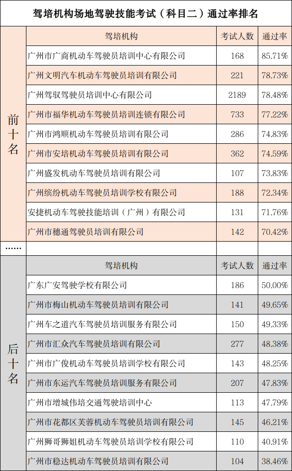 近日,广州市交通运输部门发布2024年4月广州市机动车驾驶员培训服务质量榜单和消费提醒。4月广州科目二通过率最高的驾培机构的通过率为85.71%,通过率最低的驾培机构的通过率为38.46%;科目三通过率最高的驾培机构的通过率为66.39%,通过率最低的驾培机构的通过率为23.62%。投诉方面,4月全市正常经营驾培机构共发生投诉1131宗。市交通运输部门提醒,未通过“穗学车”平台报名的学员,极大可能是“黑驾校”“外地班”,学员的学费资金安全和培训服务质量将得不到有效保障。