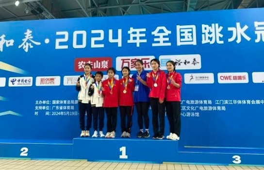 5月21日,江门体育中心见证了跳水界的一场盛事。在2024年全国跳水冠军赛女子双人10米跳台决赛中,来自广州市花都区业余体育学校输送的优秀运动员、广东海印队队员谢佩铃携手队友蒋林静,以出色的表现成功摘得金牌。同场赛事中,同样来自花都体校的许楠亦斩获女子双人10米跳台季军,为广东队再添荣誉。