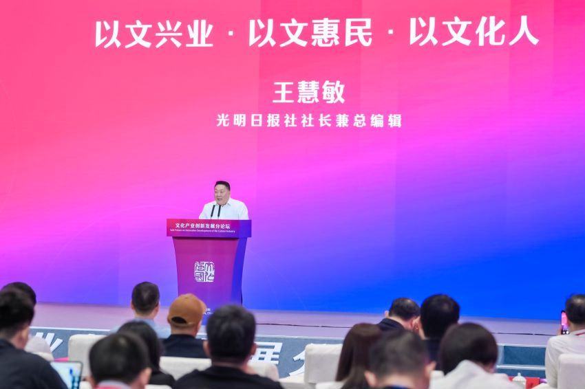 5月24日,2024文化强国建设高峰论坛“文化产业创新发展”分论坛在深圳国际会展中心举行。作为该分论坛的承办单位之一,光明日报社社长兼总编辑王慧敏在分论坛上以“以文兴业·以文惠民·以文化人”发表了演讲。
