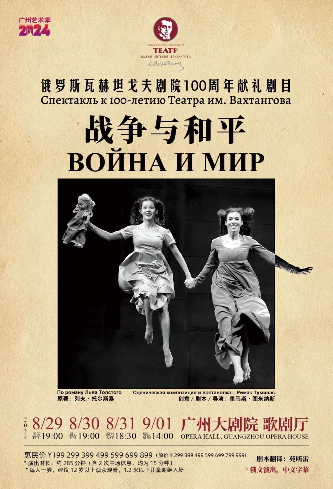 8月29日—9月1日,作为图米纳斯个人职业生涯中篇幅最为宏大的作品,俄罗斯“国宝级剧院”瓦赫坦戈夫剧院百年院庆大戏《战争与和平》将亮相广州大剧院,进行华南地区首演。