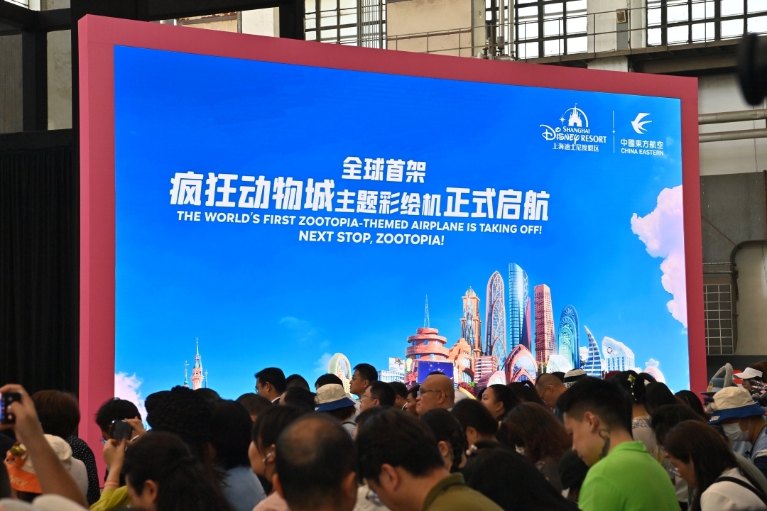 5月24日当天,主题飞机的揭幕仪式在上海一座特别设计的“疯狂动物城机场”内举行。揭幕仪式上,上海迪士尼度假区和中国东方航空的双方相关负责人共同为这架全新的主题彩绘飞机揭幕,来自疯狂动物城的朱迪和尼克也亮相现场,一起庆祝这个特别的时刻。