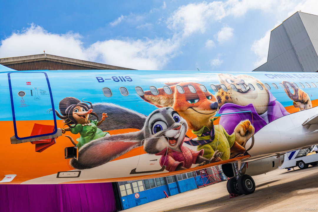 5月24日,上海迪士尼度假区和中国东方航空共同揭晓了全新“疯狂动物城”主题彩绘飞机——“迪士尼•疯狂动物城号”。该架彩绘机随后将开启“上海虹桥-成都双流”首航航班,彩绘机与前些时候在上海迪士尼度假区亮相的全球首个疯狂动物城主题园区互相呼应,把“疯狂动物城”的精彩带给度假区之外的更多游客。