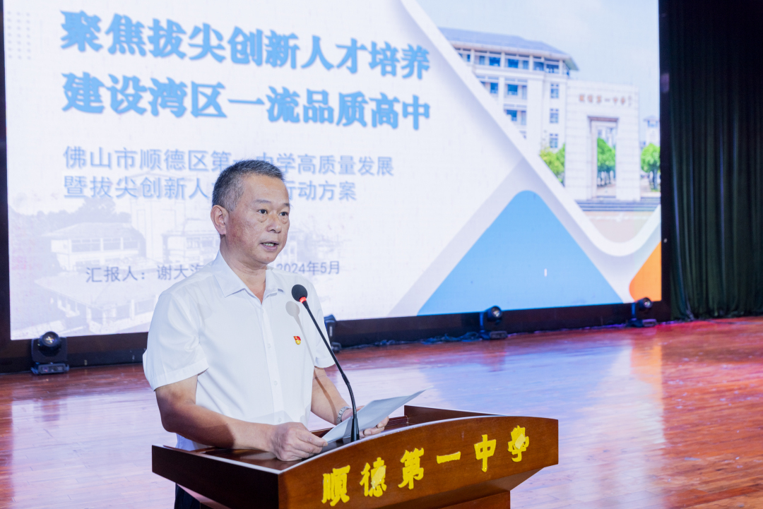 作为全区第一批开设“少年科学院”的高中,顺德一中未来将如何做?如何提升培养拔尖创新人才的能力?在今日的发布会上,顺德区第一中学党委书记谢大海作题为“‘四优’担当,向卓越领跑”的主旨演讲,围绕指导思想、主要目标、具体举措等方面,详细解读佛山市顺德区第一中学高质量发展及拔尖创新人才培养行动方案。