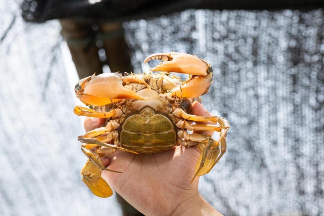 珠江河口,2-15‰咸淡水,潮起潮落间自然天成的南沙青蟹是广州市南沙区的特色农产品,2023年全区青蟹养殖面积约2万亩,年产量近4000吨,总产值约15亿元,约占南沙渔业总产值1/4。