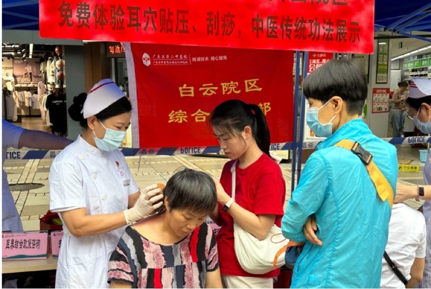 广州中医药大学第一附属医院、广东省第二中医院白云院区、广州医科大学附属市八医院、景泰街社区卫生服务中心等多家医院以及医疗机构,开设20多个义诊摊位,为居民群众提供中医适宜技术、疾病筛查、慢性病用药指导、保健养生等丰富的医疗服务,并为市民提供免费时令凉茶解暑。不一会儿,义诊摊位前排起一条条长龙,问诊声、解答声此起彼伏。