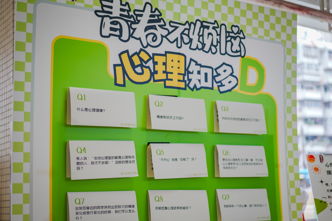 解忧集市让同学们在趣味游戏中减压放松,扫除烦恼,体验心理健康教育的快乐。同时,集市向学生普及心理健康常识,引导青少年管理情绪,正向表达情绪和需求,收获健康的身心状态和人际关系。