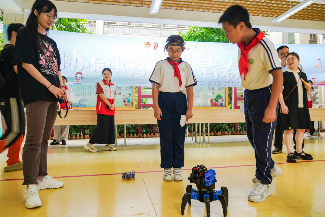 本次青少年解忧集市在摊位设置上引入了科技与音乐两大新元素。“脑力加油站”摊位配备了专业的头戴式脑电环。学生戴上电环后,通过集中注意力发送动作指令,操控机器人“意念蜘蛛”完成指定路径的移动,最后发射子弹射击靶心。据了解,脑电环和“意念蜘蛛”这一脑机设备集脑电波技术、生物反馈技术、基础机械原理于一体,既能培养青少年空间想象能力,又能通过简单的脑电操控来锻炼青少年的专注力。