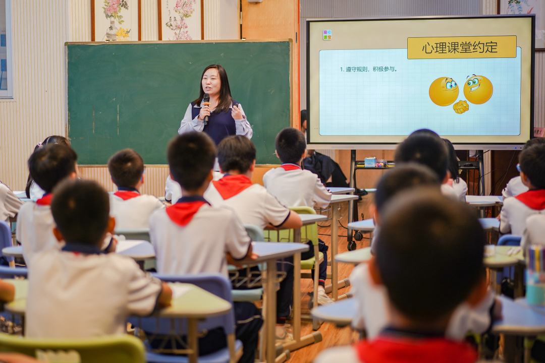 海珠区童心青少年社会心理服务中心老师刘婕雨与怡乐路小学五年2班的学生,在现场开展了一堂心理健康教育示范课《压力温度计》。现场老师通过观摩学习,了解如何在实际教学中运用心理健康知识,引导学生自我识压、有效减压,提高青少年的自我调适能力。