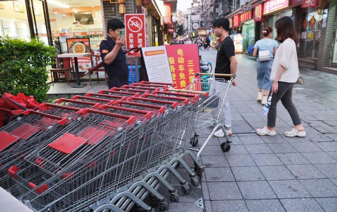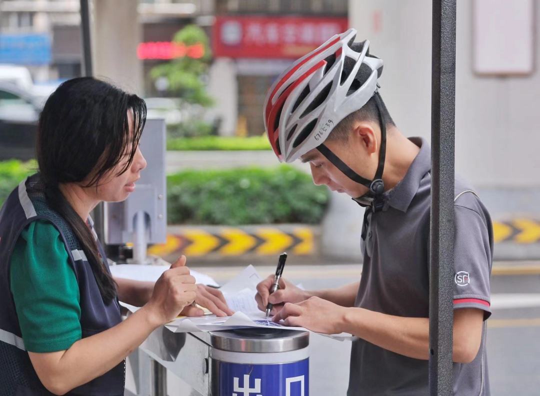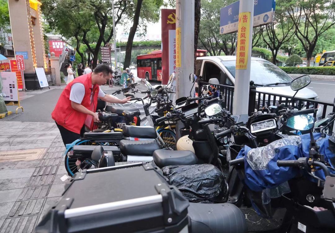 据介绍,对于村外集中停放区域,目前分三元里大道片区、机场路片区、广园路等片区,由三元里街道、村社、居委工作人员分片包干进行全天候守点,指引居民规范停车、协助居民快速找车、对居民疑惑快速答疑、维持村外停放秩序。“遇到电单车乱停放的情况,我们会帮助把车停放整齐,之前还有同事用翻译软件,帮助外国朋友找电单车。”一位值班的志愿者说道。