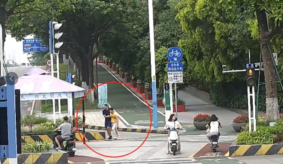12时40分,抽搐男子突然站起,在红绿灯路口疯狂往车流量大的方向冲,李家兴用尽力气将其抱住多次拦下,防止其发生交通事故,其间抽搐男子多次出现呕吐神志不清的情况。