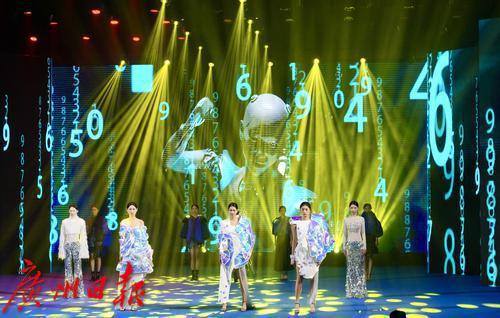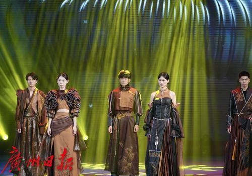 开幕式最后,华南农业大学艺术学院的学生们打造的一场关于数智与时尚融合的“智悦匠心”服装服饰T台秀。