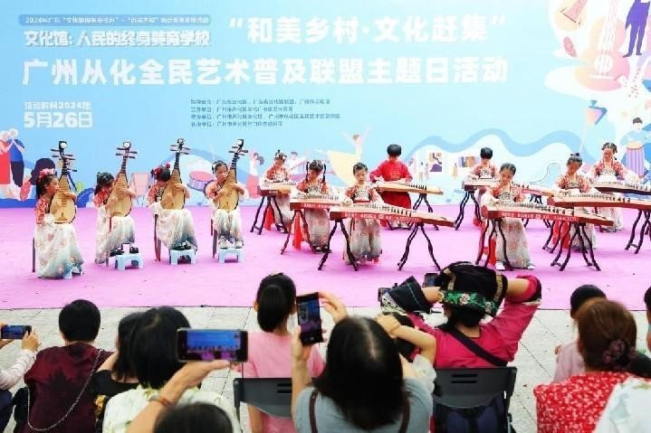 5月26日,广州市从化区在街口街河滨公园举行2024广东“文化馆服务宣传月”之“和美乡村·文化赶集”全民艺术普及联盟主题日活动。该活动以线下为主,线上同步的方式举办,活动当天,吸引周边群众“看新”“探奇”“趁圩”,现场参与百姓近万人,线上观众逾14万人次。