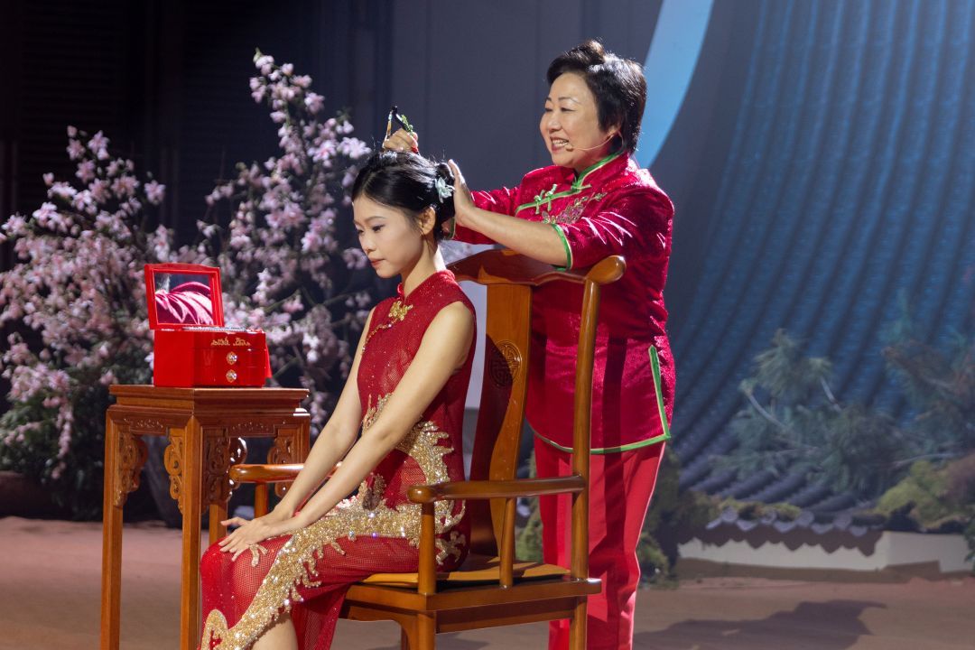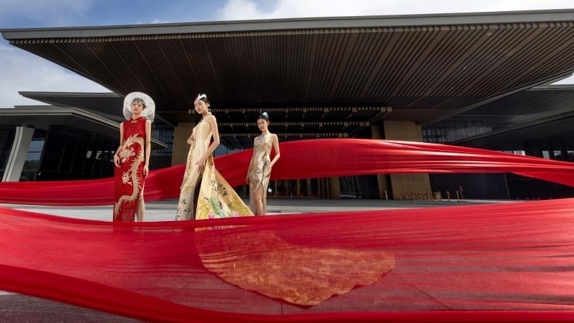 在5月25日,广州白云国际会议中心与白云国际会堂,一场“粤韵之礼∙天作之合”艺术婚礼秀为即将步入婚礼殿堂的新人们展现了高级定制的魅力。婚礼秀以岭南文化为媒,融合东方美学空间及传承岭南瑰宝的艺术设计为引,为宾客传递婚礼灵感,呈现一场流光溢彩的艺术盛宴。婚礼秀主题提炼岭南文化元素,以“江澜海阔,花盛云祥”的艺术呈现“四季流转,万千气象”,把多样绽放的岭南宅院艺术意境搬进白云国际会堂5楼花城厅,为宾客打造岭南雅致与艺术时尚融合的婚礼剧场。当宾客穿过镬耳墙,在时空中穿梭,可以感受丰厚的人文气韵。婚礼布置也是岭南传统风格的古建筑的瓦顶屋檐,瓦屋檐亦是舞台,搭配中国传统榫卯结构设计悬挂园林装置艺术,现场布置更利用光影技术,用科技打破传统婚礼风格,以全新的科技+艺术设计思路打造婚礼艺术氛围。随着光影倾泻而下,宾客以“画中之人”的意境沉浸式体验了“岭南意,画中游”的意境。