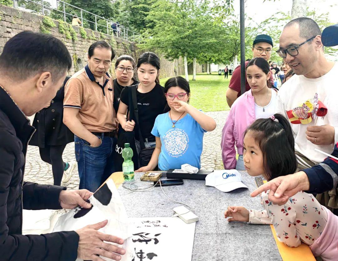 同时,还设立了各种美食小吃、文创产品、中文书籍等摊位,让观众有机会近距离感受中国文化的魅力。其中,南沙区还派出文化交流代表港籍非遗传承人李柏亨及本地书法家曾炳珠一同参加法兰克福中国节活动。