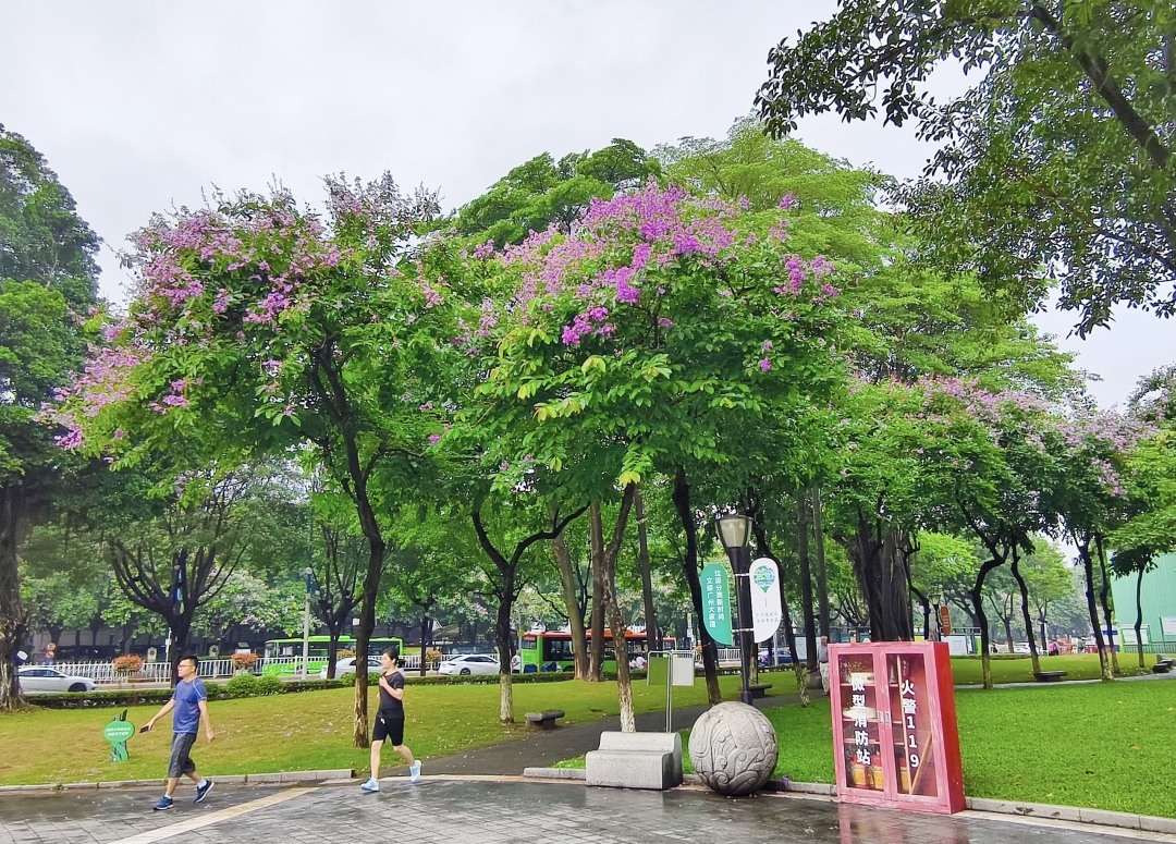 时下的广州番禺,火红的凤凰花尚未褪去颜色,烂漫的“紫薇仙子”又展露枝头。遍布街头、公园的大叶紫薇花悄然绽放,番禺街边的花景再次刷新。
