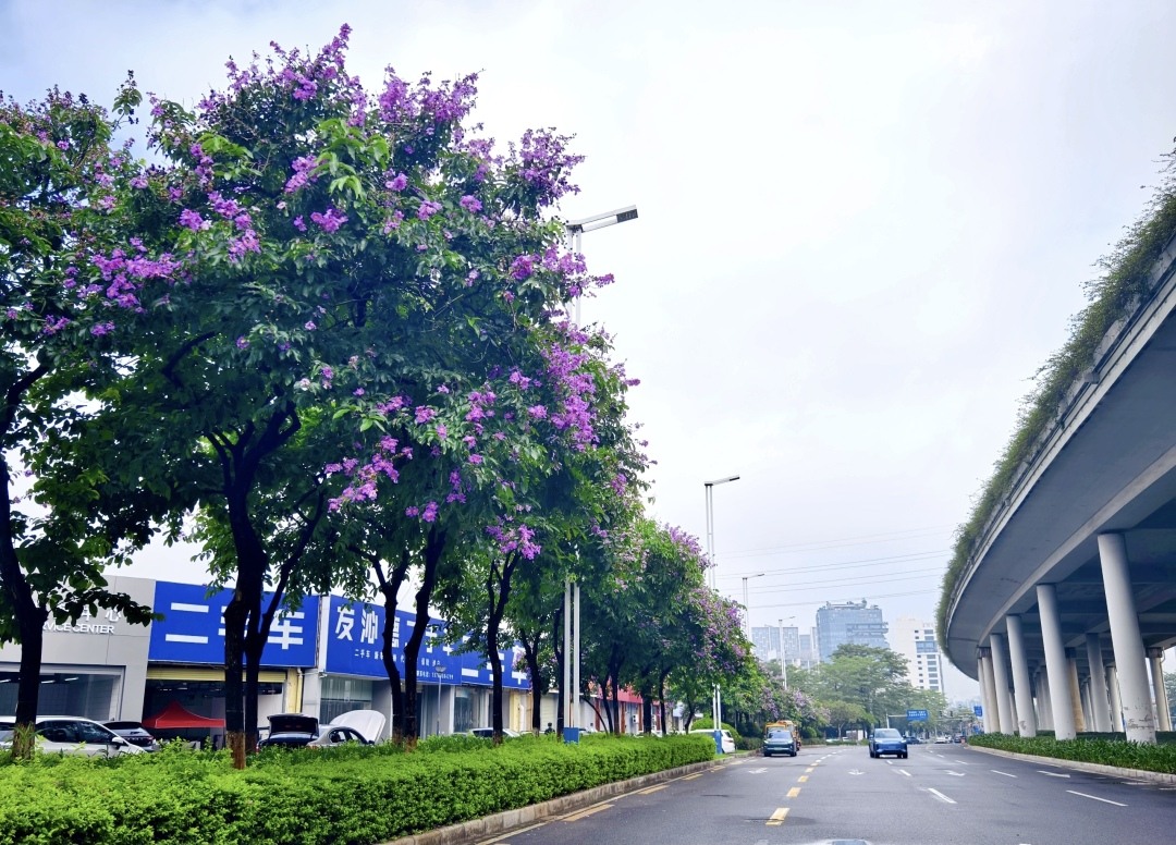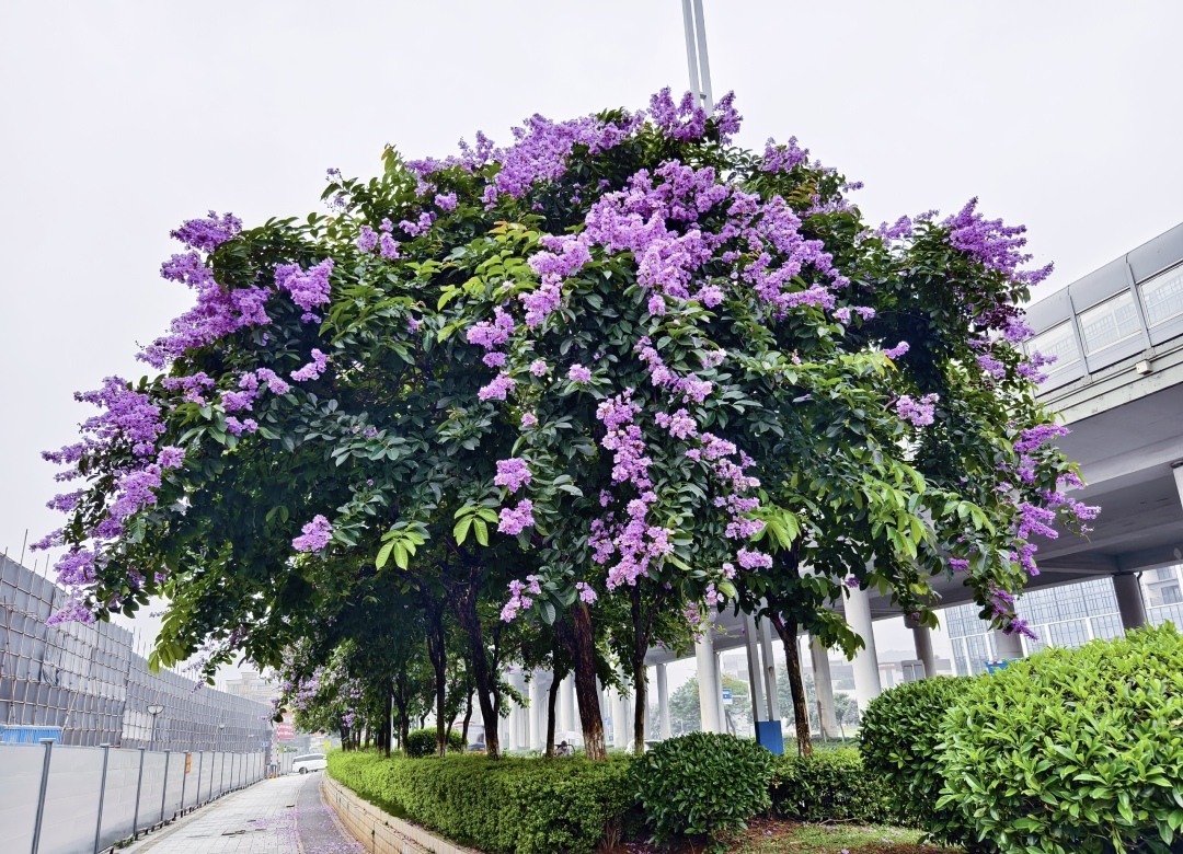 大叶紫薇是我国夏季常见的花木之一,又名大花紫薇、洋紫薇,花大叶大,被誉为“行道树中的美女”,花开时灿若烟霞,花期为5月至7月。风中摇曳的“紫薇仙子”,给城市增添了几分浪漫的遐想。如果你恰逢路过,不妨放慢脚步拍照打卡,但要注意安全哦。