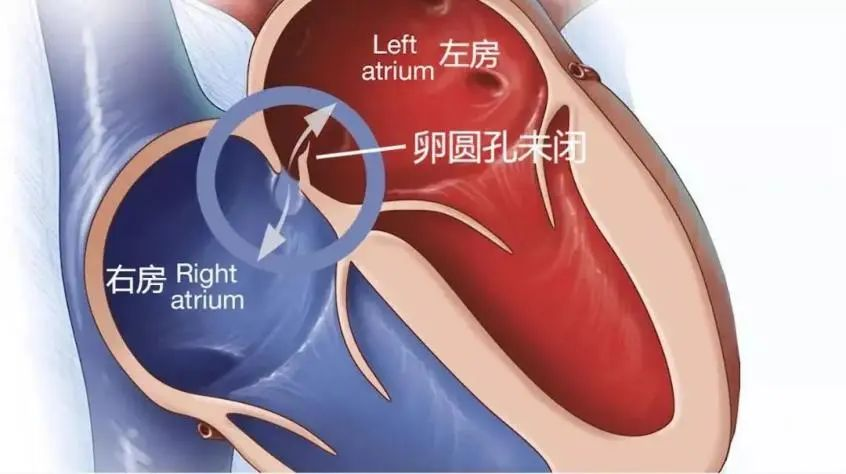 龙明指出,卵圆孔是胎儿发育所必需的一个生命通道,在出生后大多数人的这个孔会慢慢相互贴近、粘连、融合,若生长到3岁以上还未完全融合,则将遗留的裂隙样通道称为卵圆孔未闭。卵圆孔未闭的长度范围为3-18毫米,平均为8毫米,会随年龄增加而增大。当慢性或短暂右心房压力升高超过左心房压力时,可能导致血液从右心房异常地流入左心房,从而增加偏头痛、心源性脑卒中等疾病的风险。