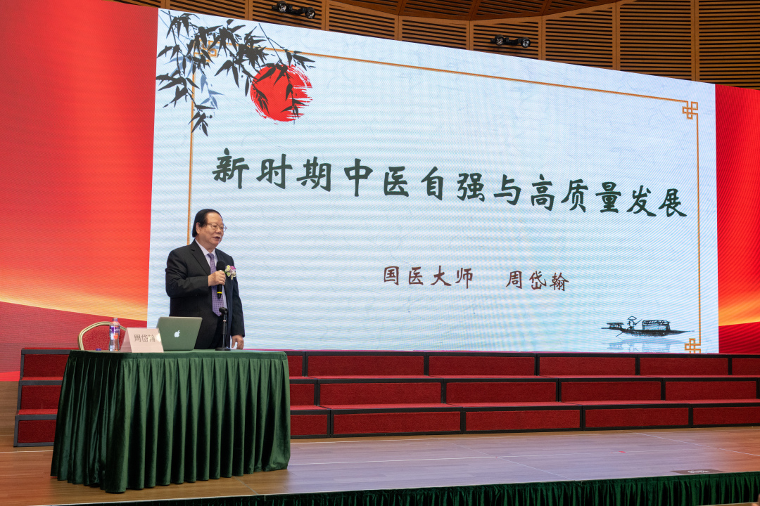 活动现场,国医大师周岱翰以《新时期中医自强与高质量发展》为题,从中医是人文与医学双重属性的复杂的生命科学、中医在传承中的自信自强、中医药高质量发展与中西医协同创新三个方面作了深入阐释。