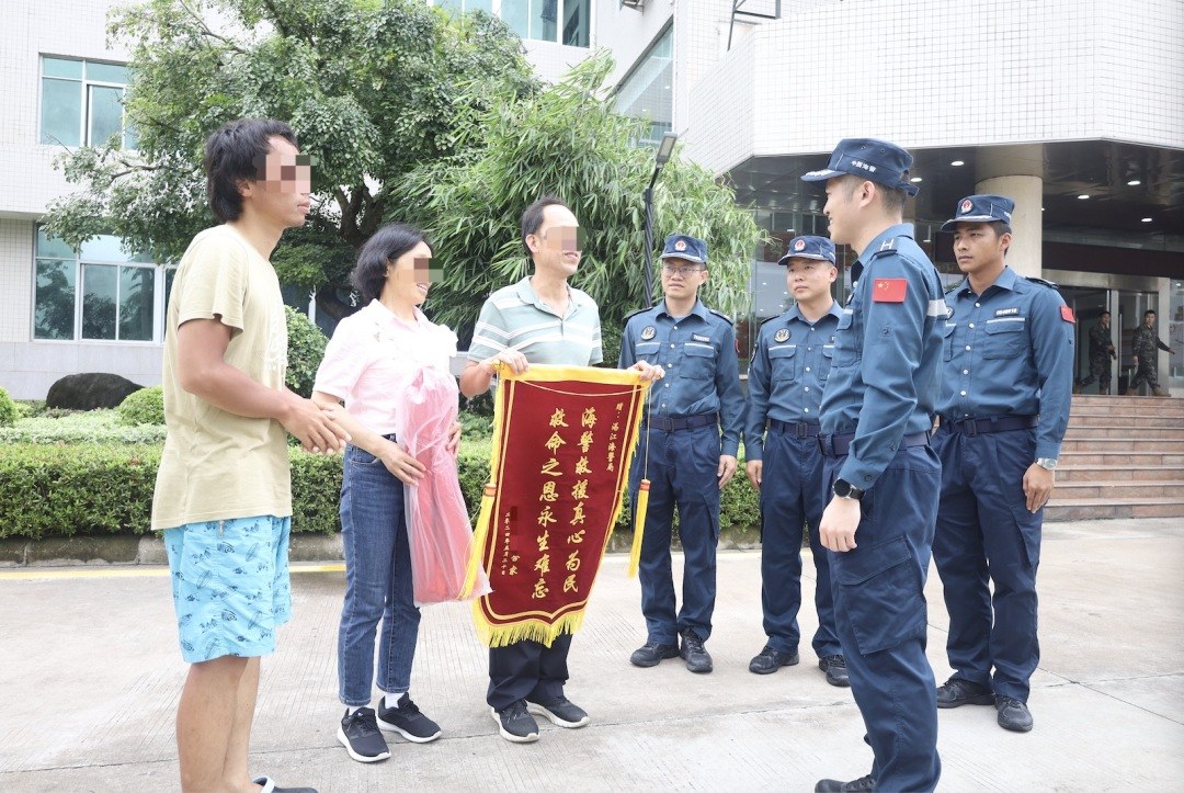 “谢谢你们救了我的孩子,你们工作也很辛苦、很危险,你们一定要平平安安……”近日,广东湛江海警局收到数面锦旗,获救男子的家属对参与紧急搜救的海警执法员表达谢意。