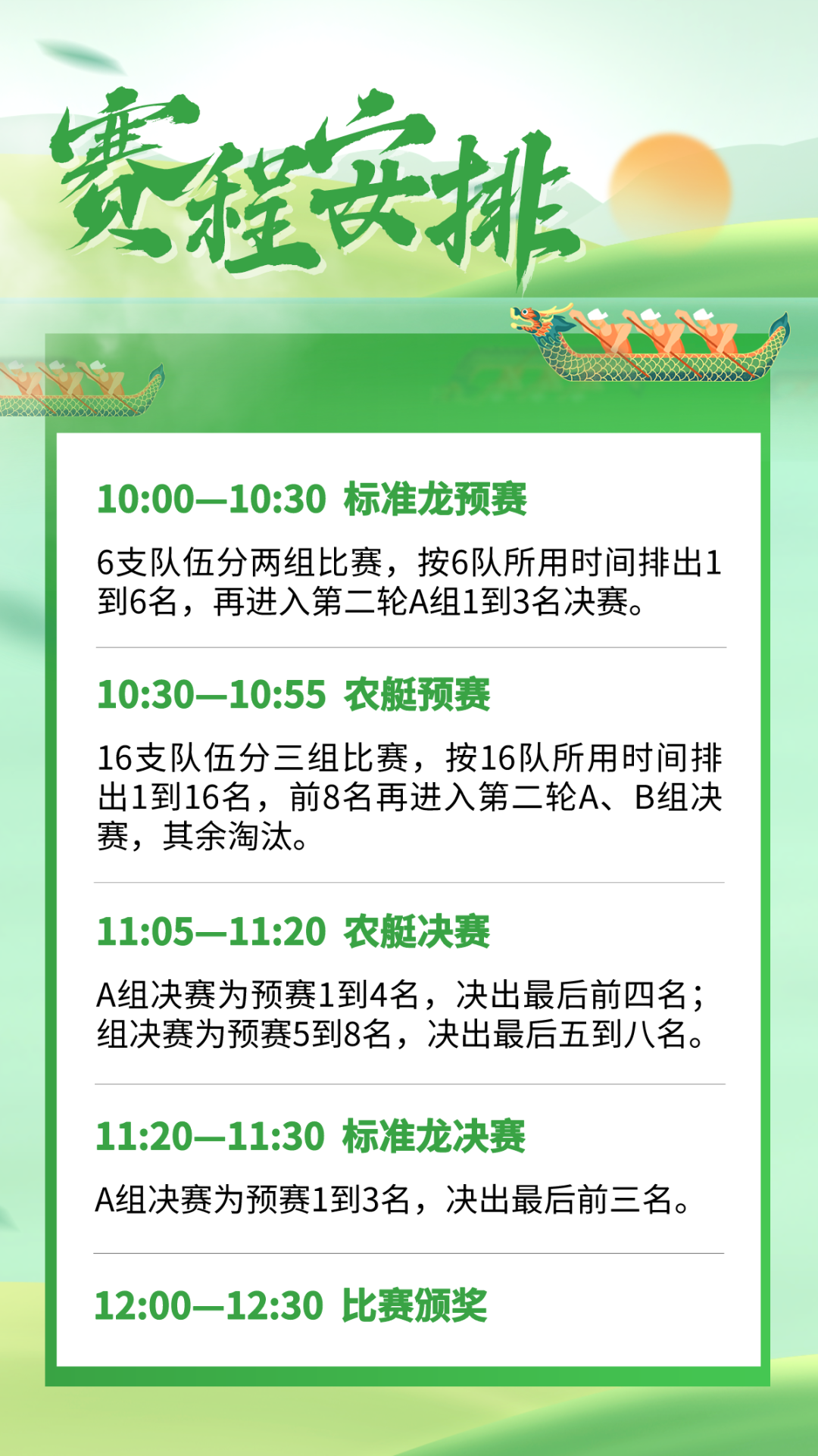 此次活动汇集了港澳青年组成的榄核镇龙舟队、万顷沙龙舟队、资产领航队、新南商代表队、体联会龙舟队、湾区青年汇龙舟队6支龙舟队,还有来自万顷沙镇各村居、部门的16支农艇队。比赛将采用标准龙舟和河道追逐竞赛的形式,实行预决赛制。