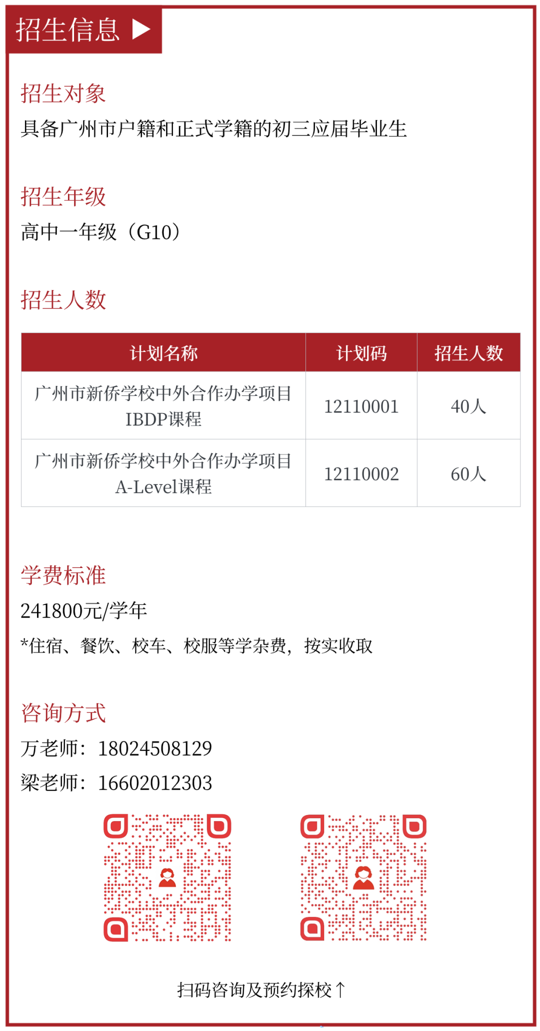 6月2日,广州市新侨学校将举办专场讲座,欢迎扫描二维码预约探校。