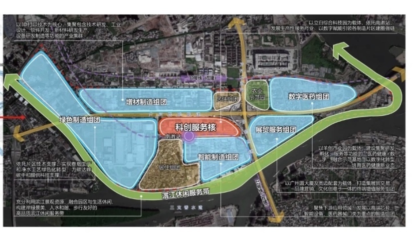 值得一提的是,东沙三面环水,被三枝香水道、珠江后航道、花地河环绕,江岸线长达7.8公里,其沿江地带被纳入白鹅潭商务区东沙片区,正依托广船项目2公里珠江岸线、超百万平方米超大型综合体,广州国际医药港医药商贸物流基地,以及即将投入使用的黄沙水产新市场,形成滨江商贸产业带。 “我们认为,现代都市工业、现代商贸业能够互相支持、配合、赋能,广州国际医药港可以与大健康类现代都市工业形成联动,同时提供会务、展贸、酒店餐饮等商业配套,黄沙水产新市场以现货交易为主,羊城创意产业园·东楠汇可以安置水产市场中海鲜食品进出口贸易的部分,形成协同效应。”该负责人表示。