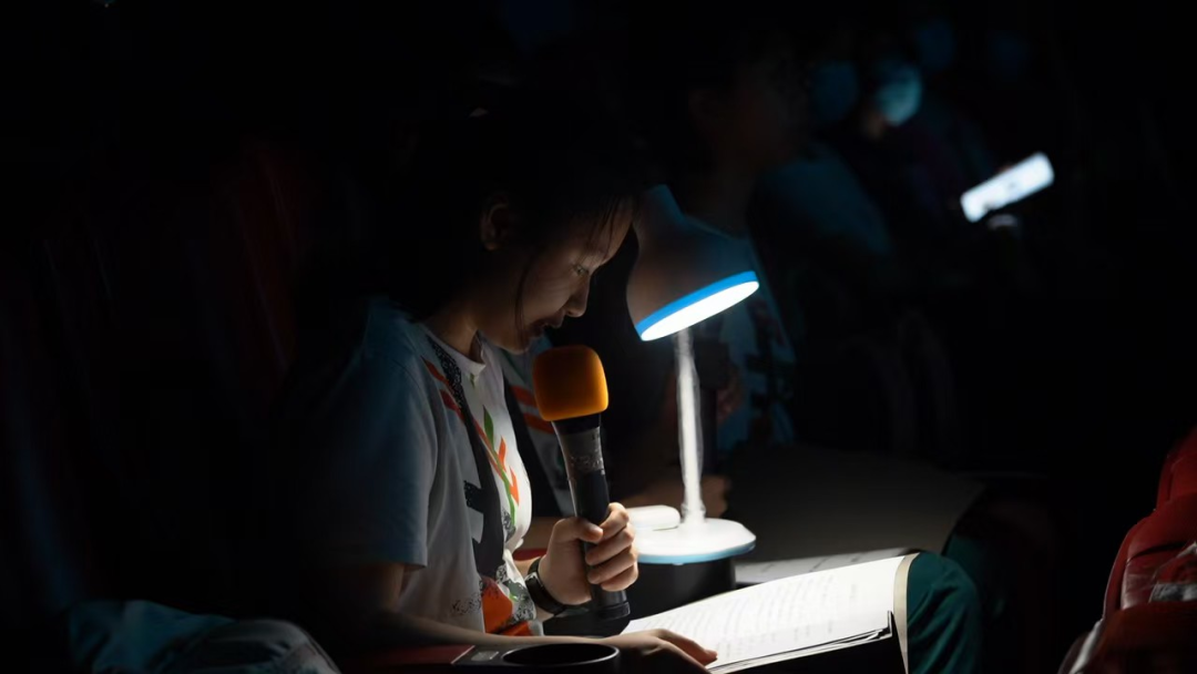 除了影片本身节奏快、场景多,影院环境对于口述员也是不小的考验。负责指导本次口述活动的馆员蔡东恺对此尤为感叹:“虽然贺同学和杨同学都在三月份参与过《长安三万里》的口述讲解任务,但对于他们来说,这都是第一次在电影院现场讲解,而对于李同学来说,他不仅是第一次参与,还是第一次在电影院用麦克风口述电影,难度系数很大。”他解释道,最大的难题就是他们可能无法识别自己的声音是否能够压过背景,从而被更多视障观众听到,帮助他们获取画面信息。