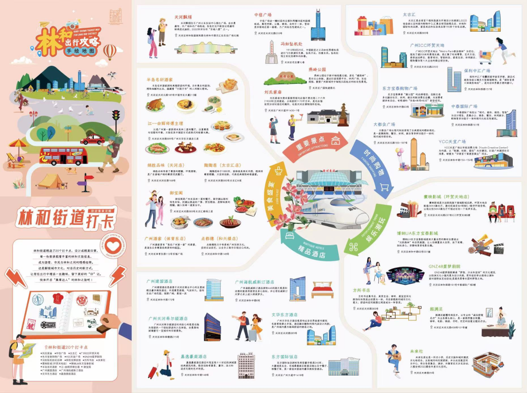 5月29日,记者从广州市天河区林和街道获悉,《林和出行攻略手绘地图》正式发布。《林和出行攻略手绘地图》展现天河区林和街道重要景点、时尚购物、娱乐潮玩、精品酒店、美食盛宴等元素,还精选出20个打卡点,设计成精美印章,每一枚都承载着丰富的林和文旅信息。