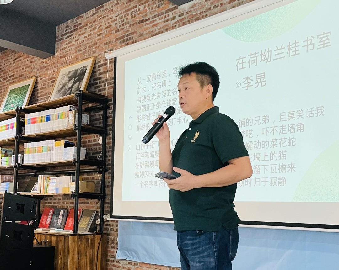 李晃朗诵并讲解诗作《在荷坳兰桂书室》