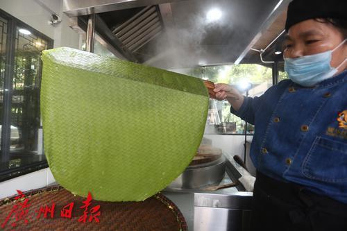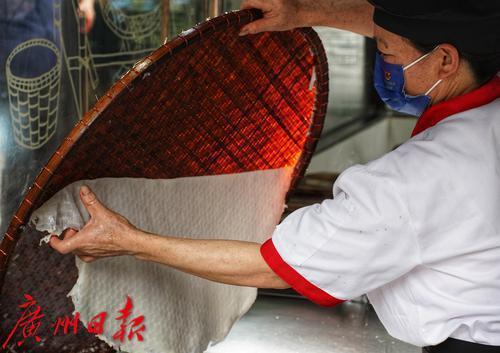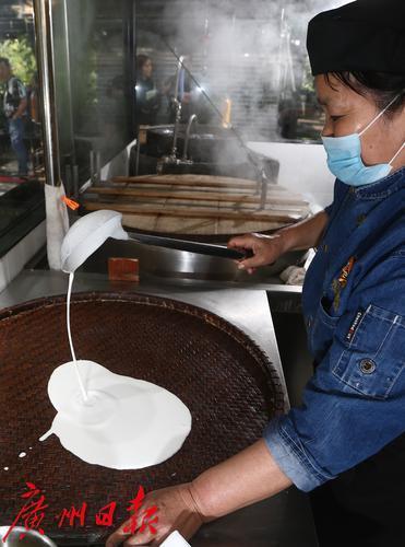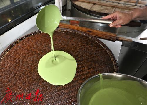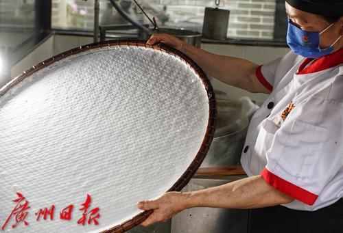 广州传统沙河粉号称“真八道”,分别是选米、洗米、磨浆、铺浆、蒸煮、起粉、摊晾、手工切粉八道工序,每道都不可马虎。