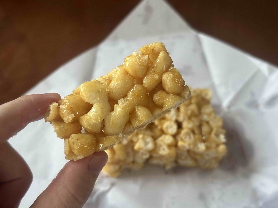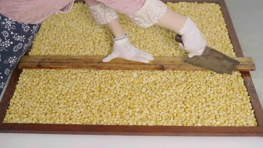 据了解,麻蛋仔的生产配料只有糯米粉、白砂糖、花生油,生产配料取材环保健康,其制作方式也相对简单易做。传承人杨欣告诉记者,制作麻蛋仔前,先将糯米粉加入适量清水揉成面团后,切成大小均匀的小面团,将小面团压扁后放入烧开的清水里煮至小面团浮起,捞起后加入适量的糯米粉揉成面团,分成大小均匀的小面团擀开至合适厚度,切成大小均匀的小颗粒,放入油锅炸至金黄色,形成一粒粒的麻蛋胚,然后凉却后备用。随后在锅里放入清水,加入适量的白砂糖熬煮,等白砂糖全部化开后开始发黄变粘稠时,再加入适量麻蛋胚搅拌,搅拌好后倒入模具压平切块包装。杨欣称,制作好的麻蛋仔,其外形就像河源版的沙琪玛,但其口感独特,食之清甜酥脆,令人爱不释手,回味无穷。