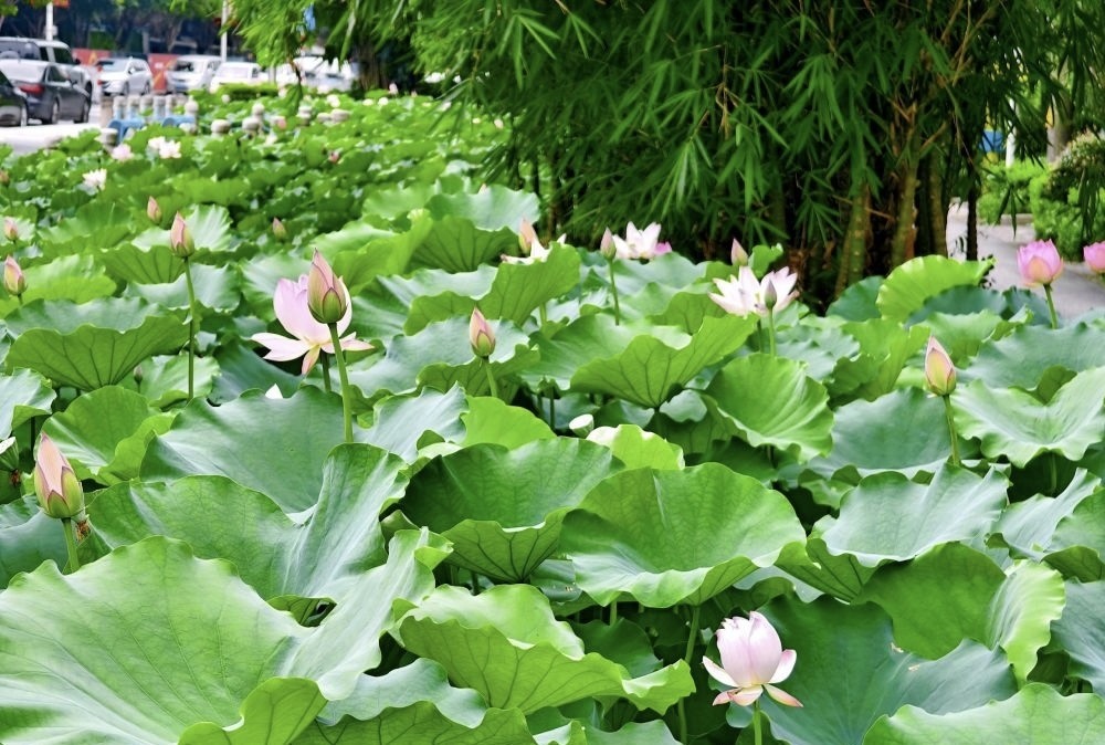 又到荷花盛开的时候。走进广州番禺农村、社区,水塘里荷叶绿了、粉色的荷花开了,成为夏日里一道亮丽风景。