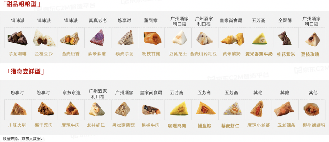 以京津冀为首的华北地区,消费者对咸粽的接受程度明显提高,鲜肉、蛋黄肉粽等出现在了不少北方人的菜单上;而热衷于咸粽的南方人,也表现出了对于豆沙粽的喜爱。