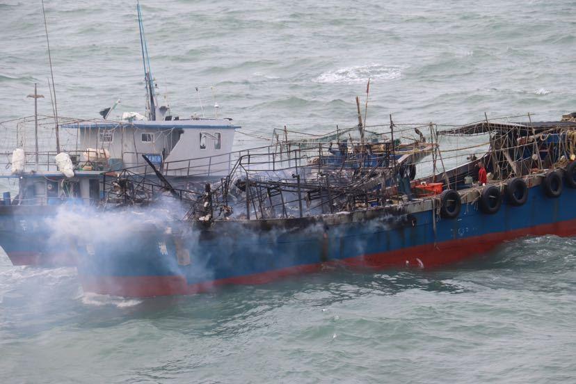 5月30日下午,一艘渔船在阳江外海突发火灾险情,经交通运输部南海救助局救助船出动施救,船上4名渔民平安获救。