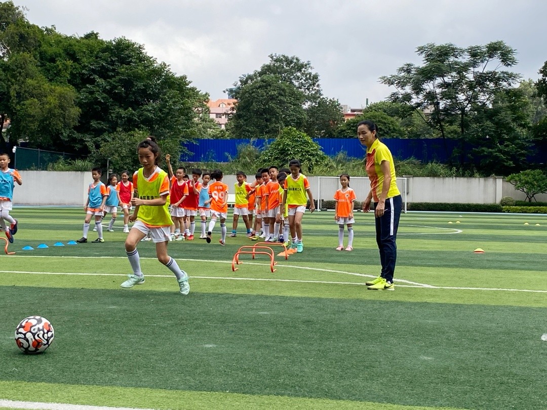 据介绍,该校刚通过教育部公示,获评“2023年全国青少年校园足球特色学校”。在此次庆“六一”主题活动中,广州体育学院足球学院还给该校授牌,省实荔湾二小成为该院教学实习基地。在足球名家进校园活动中,广东省足球协会副主席、中国女足前队员赵利红与教练一起,带领学校足球校队的男女队员,在球场上训练。省实荔湾二小以特色学校评选和实习基地建设为契机,正以课程的形式,有组织、有计划地在全校扎实开展面向全员的校园足球项目。