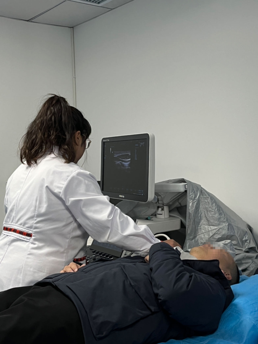 米林市人民医院超声影像科医生巴玛德吉正在为一位患者做甲状腺超声检查