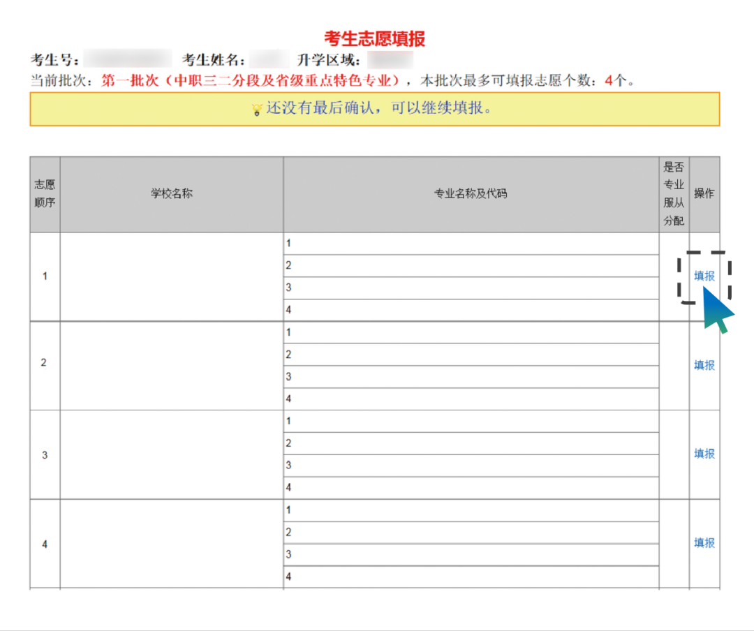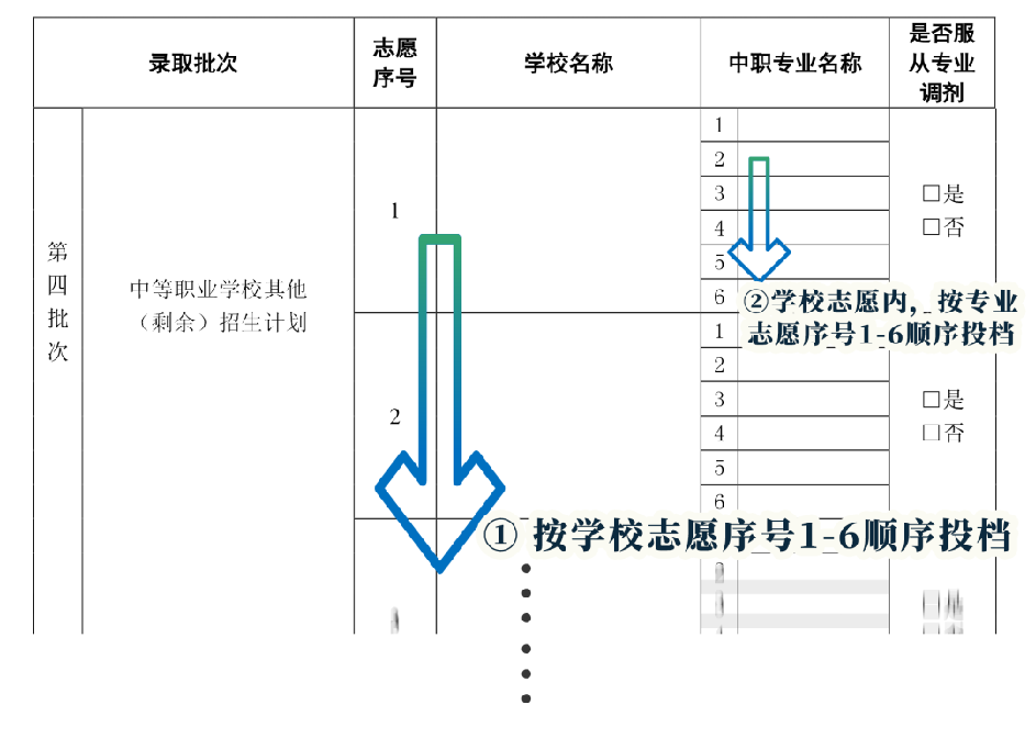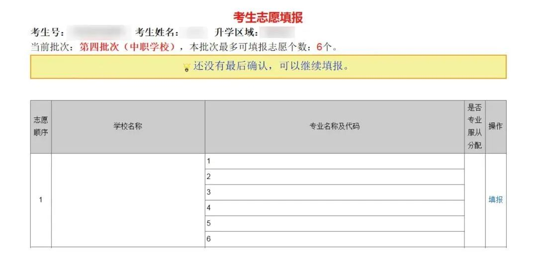 (2)第四批次的中职部分:填报6个学校志愿,每校可填报6个专业。不同校区占不同学校志愿。