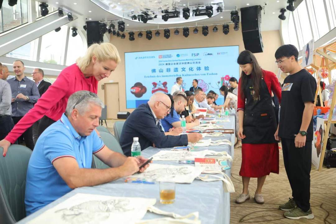 活动中,中德工业服务区管委会向德国代表团展示了湾区“最岭南”文化会客厅,以文化为媒,讲好佛山故事、湾区故事、中国故事。活动设在“三龙湾游船”上,船上设置了剪纸、狮头、鱼灯、木版年画等佛山“非遗”文化体验摊位,由佛山“非遗”传承人现场展示技艺和亲手教授,让不少德国友人赞叹不已。