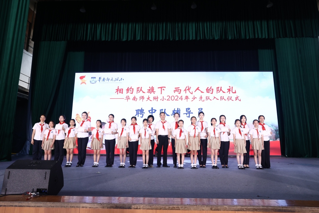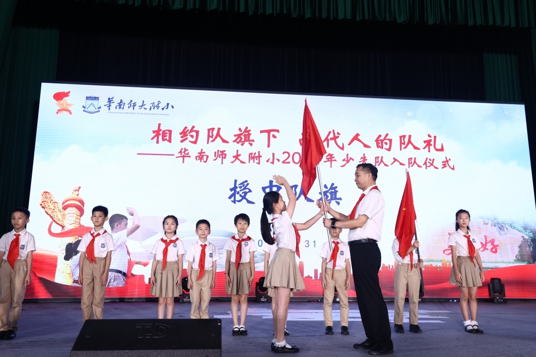 5月31日,华南师范大学附属小学(以下简称“附小”)在华南师范大学手球馆隆重举行主题为“相约队旗下,两代人的队礼”的少先队入队仪式。在家长和老师的见证下,附小一年级学生光荣地加入了中国少年先锋队,成为光荣的少先队员。