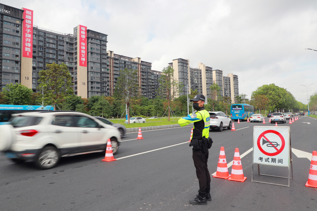 交警提醒走读考生及家长,应提前熟悉考场周边道路情况,科学选择出行方式及线路;如遇突发情况,请及时报警求助。其他社会车辆如行经考场周边道路,请严格遵守法律法规,做到降车速、禁鸣笛、按序通行,共同营造良好的护考环境。