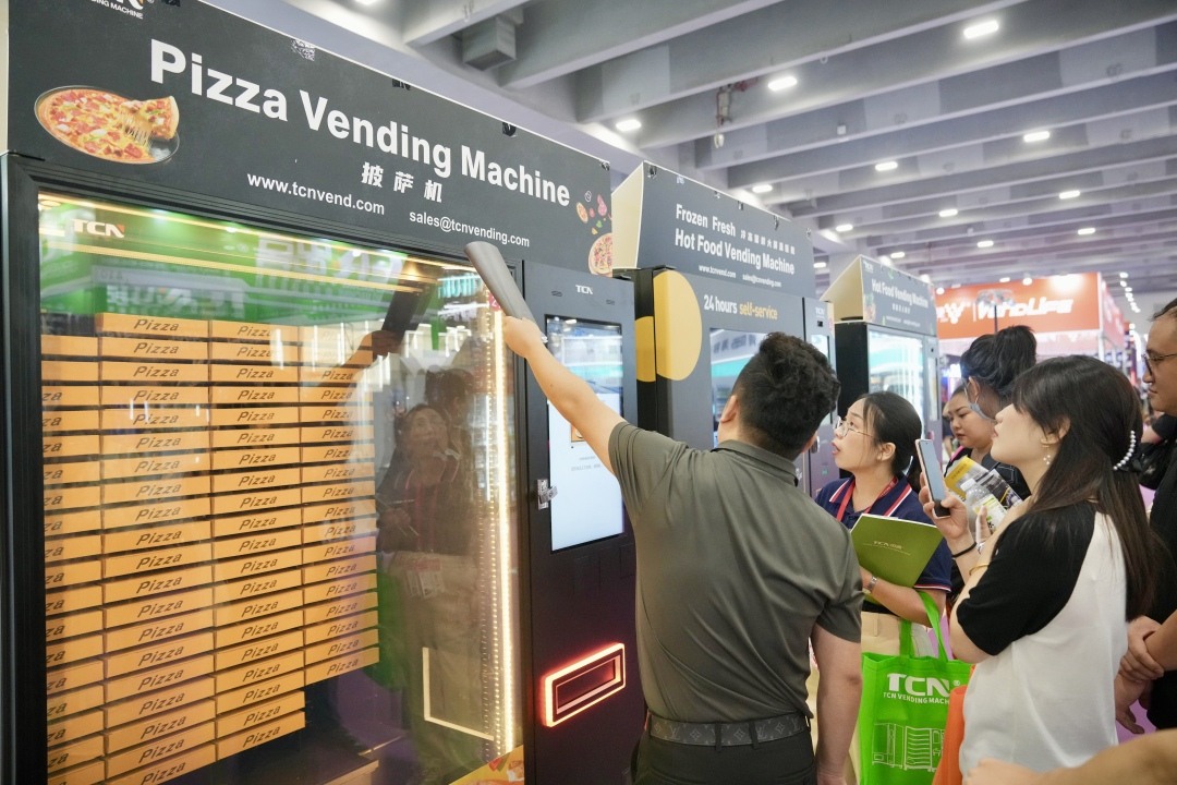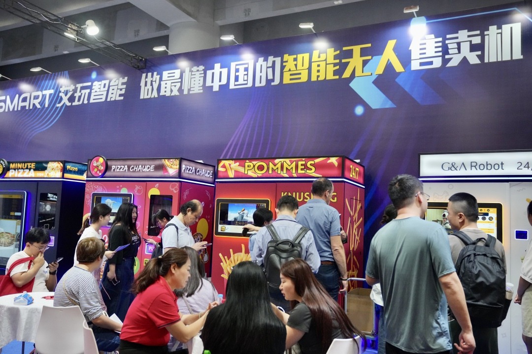 展会上,包括湖南中吉自动售货机有限公司在内的诸多企业带来了很多类型而且针对不同运营场景和行业的自动售货机,比如适合放在室内场景的开门柜,像打开自家冰箱一下简单,关门就自动结算,吸引了众多客商驻足体验。“除此之外,我们还有比较经典的饮料零食弹簧机,侧出货饮料机,寻址机,生鲜果蔬升降机,以及比较大型的无人商超”。据中吉展位有关负责人介绍,同时,他们还带来了很多比较复杂和高端的机器,比如现磨咖啡机,制冰咖啡机,披萨机,美食盒饭机,冰激凌冷冻机等。