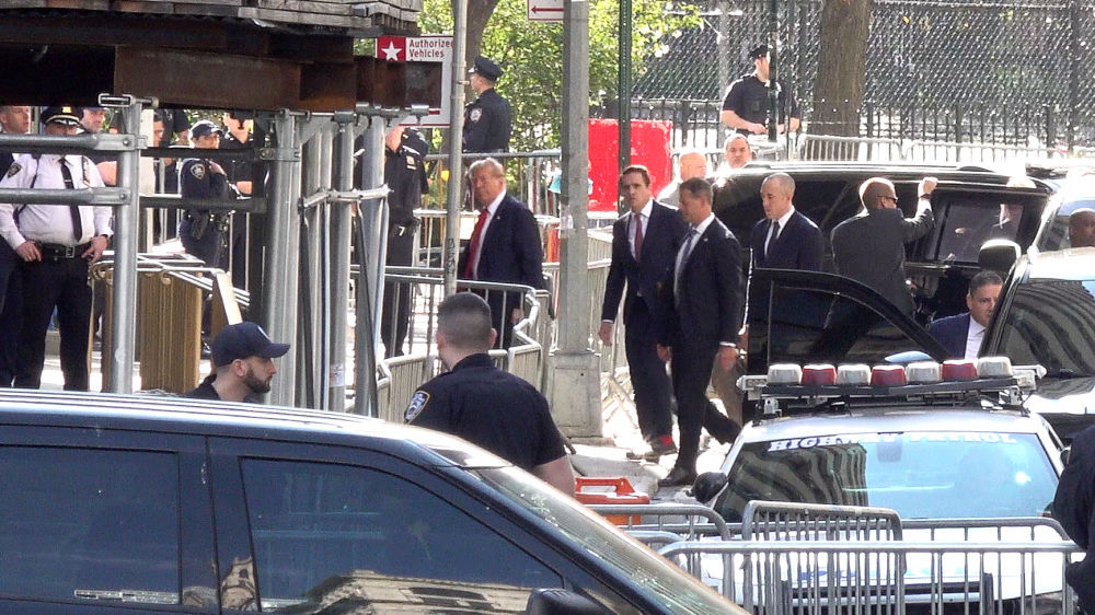 这张4月15日的视频截图显示,特朗普抵达纽约曼哈顿一家刑事法院出庭。新华社记者丁晔摄