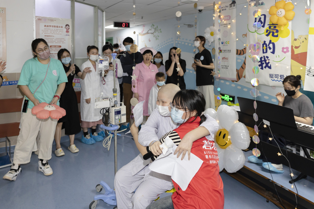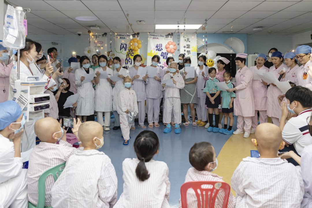 “我懂得你啊你已经足够坚强,偶尔小紧张但还好没有投降,将不安释放尽情去做美梦一场......”在全场齐声唱的歌声中,“闪亮的我,想唱就唱”六一音乐会在高涨的气氛中结束,孩子们恋恋不舍,护士长张婷婷哑着嗓子把他们一个个哄回病房休息。