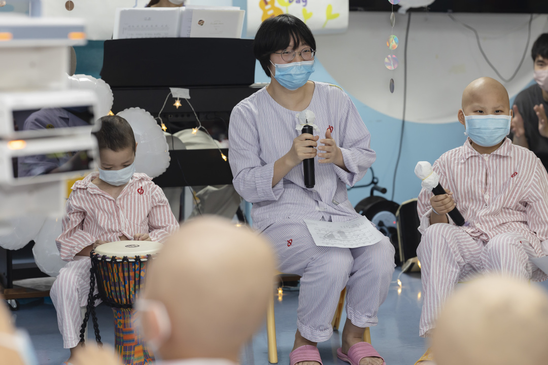 而这一切,基于2014年起,音乐治疗师团队在广州市少年宫的支持下,与中山大学附属第一医院儿科二科在儿童血液病房落地的公益项目“病房中的音乐治疗”。目前该项目已不断发展,无界艺术公益创新发展中心、碧心公益也加入了支持的行列。