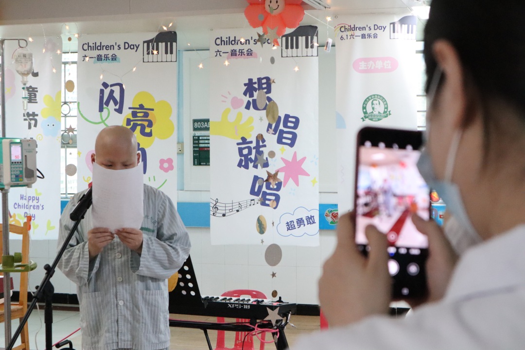5月31日晚,为庆祝六一儿童节的到来,在碧心公益服务中心、无界艺术UACC、SNMT特需人群音乐治疗团队等的支持下,广州市中山大学孙逸仙纪念医院儿童血液肿瘤专科患儿病房内举办了一场主题为“闪亮的我,想唱就唱”的六一音乐会。