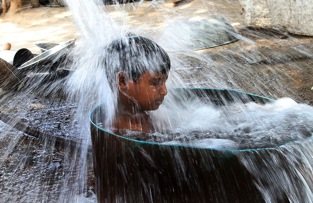当地时间2024年5月31日,印度新德里,当地高温天气持续,男孩洗澡消暑。 澎湃影像 图